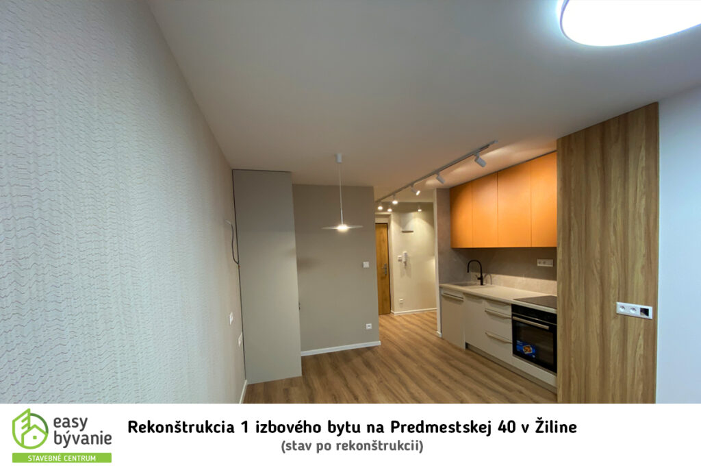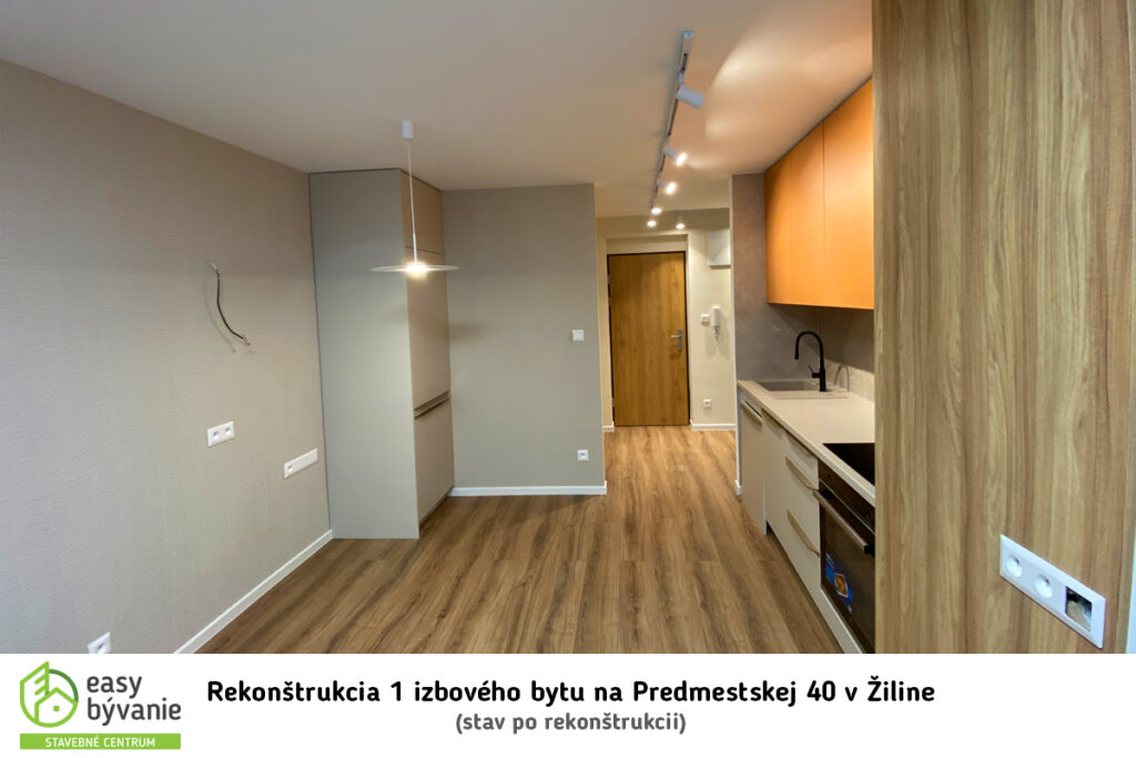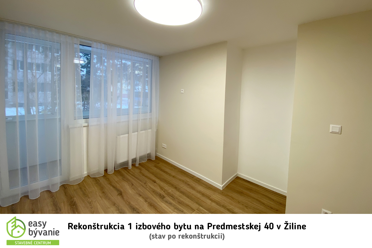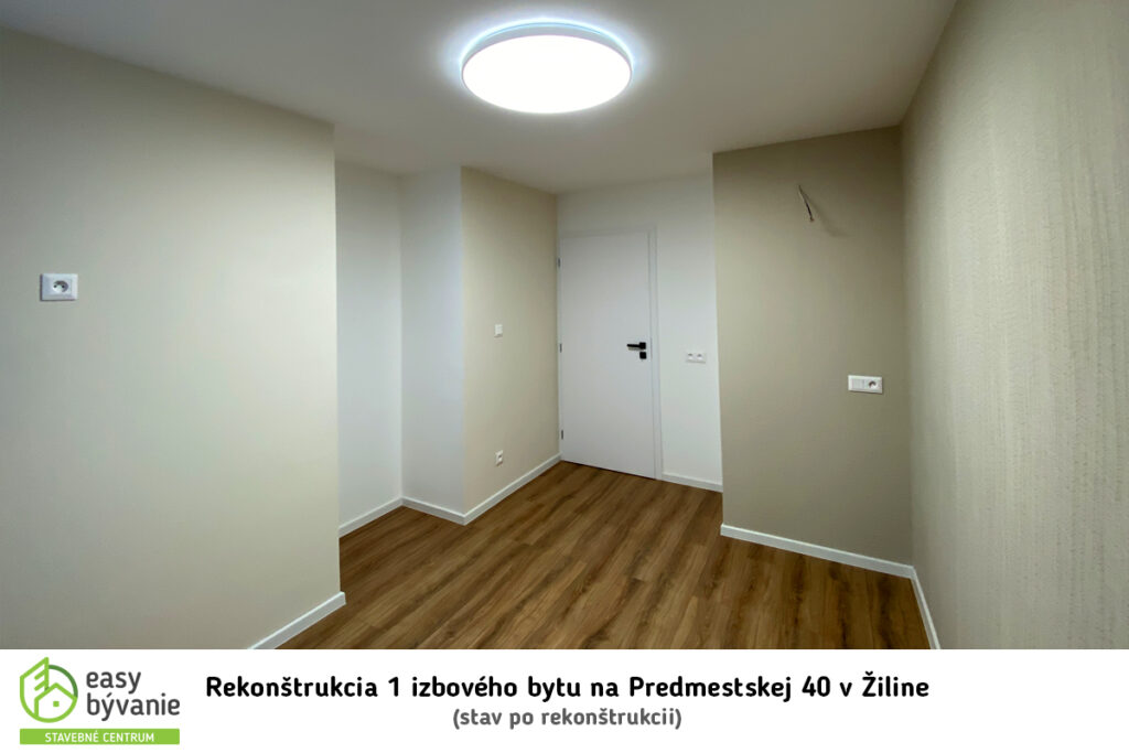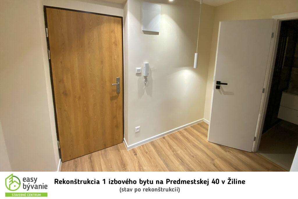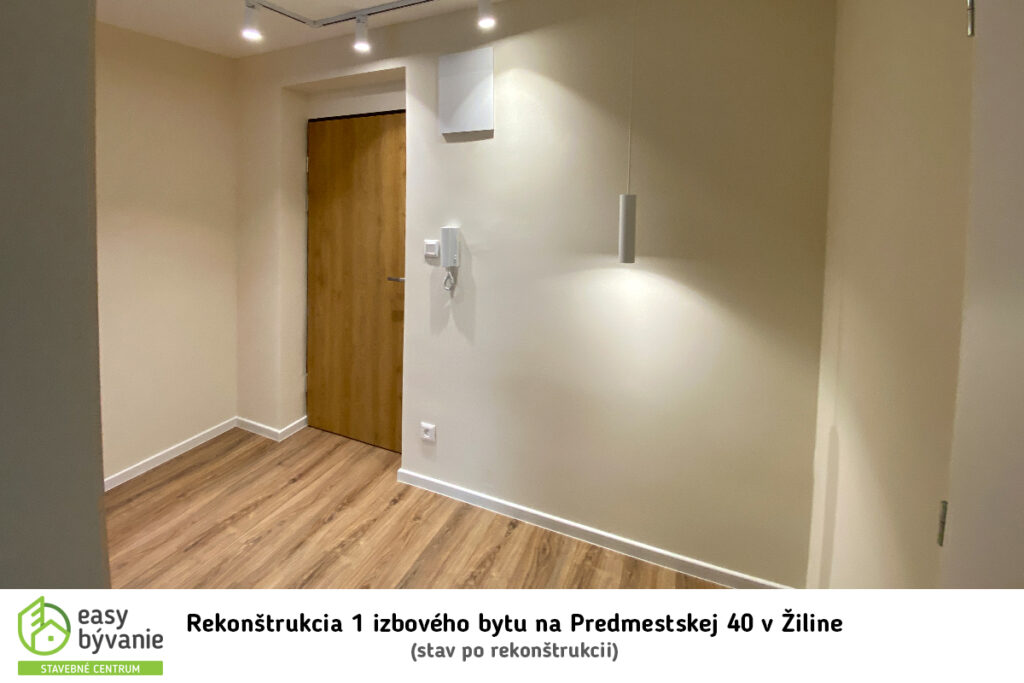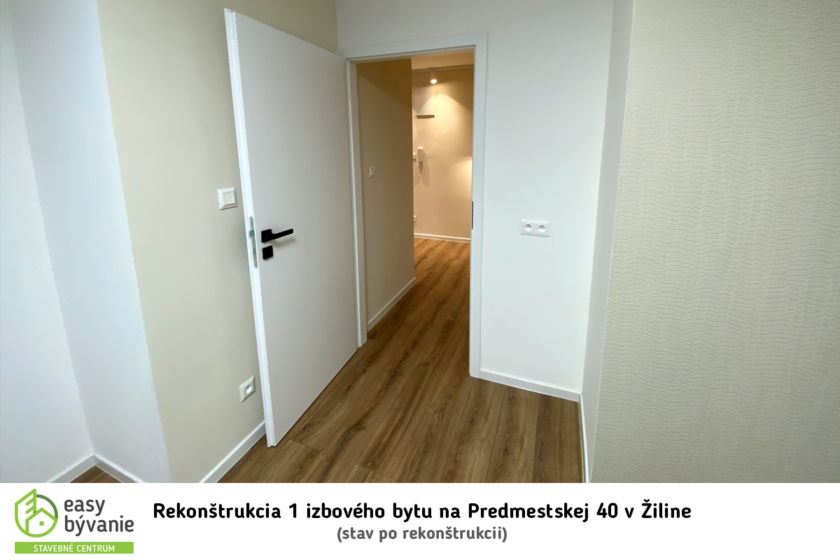 Kompletná rekonštrukcia z 1-izbového bytu na 2-izbový, Predmestská 40 v Žiline