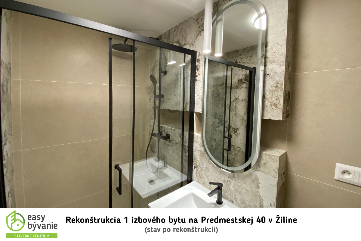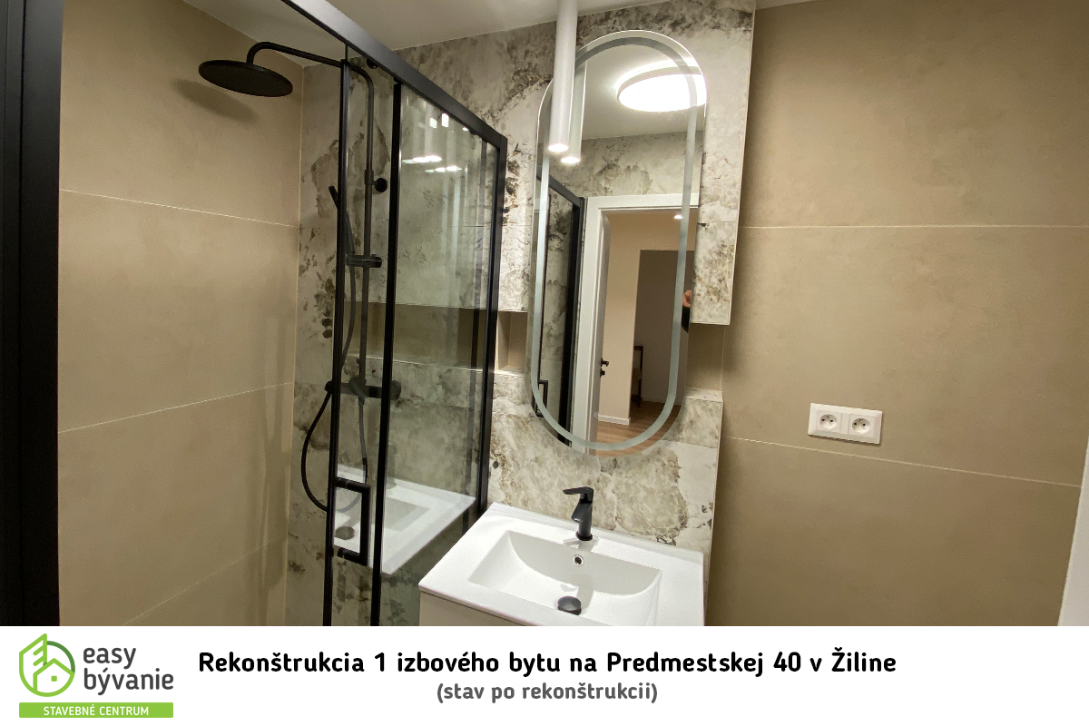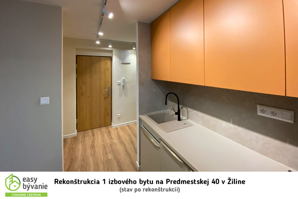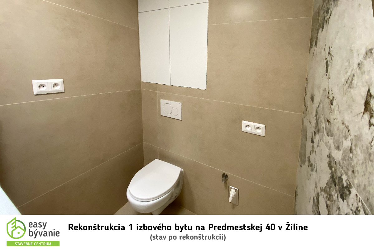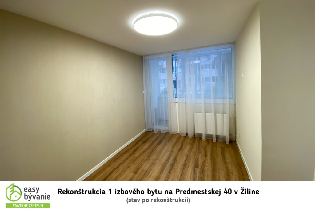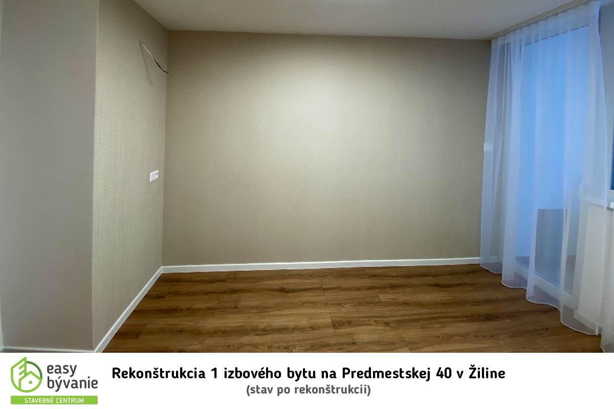 Kompletná rekonštrukcia z 1-izbového bytu na 2-izbový, Predmestská 40 v Žiline