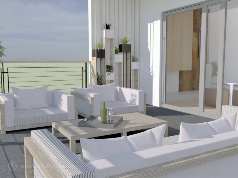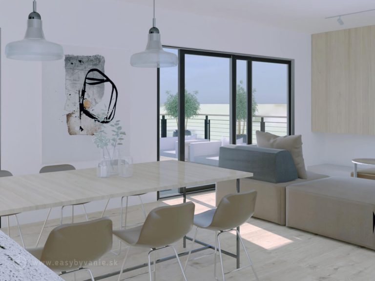 Ide o 4‑izbový rodinný dom strednej vel’kostnej kategórie, určený pre 4–5 člennú domácnosť. Je riešený ako samostatne stojaci objekt, trojpodlažný (1.PP, 1.NP, 2.NP), prestrešený plochou strechou. Vstup na pozemok je na úrovni 1.PP. Nachádza sa tu garáž so skladom. Po krytom exteriérovom schodisku sa dostaneme na l.NP, kde je hlavný
